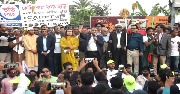 In anticipation of the forthcoming national elections, a mass procession took place this evening as part of the election campaign for agriculturist Hasan Jafir Tuhin.