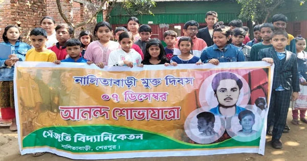 ‘Nalitabari Freedom Day’ was celebrated in Nalitabari, Sherpur. On December 7, 1971, after two days of fighting in Nalitabari, freedom fighters and the public entered Nalitabari town and hoisted the Bangladesh flag and celebrated victory.