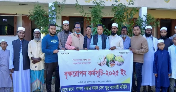 Pagla Bazar Small Social Service Businessmen Association has planted 60 fruit tree saplings in a madrasa, a temple and two mosques in Paschim Pagla Union of Shantiganj Upazila.
