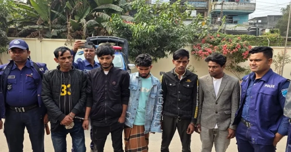 The arrested individuals have been identified as: Tamim Mollah (24) Alipur Gorsthan, Anik Islam (25), Alipur, Ratul Sheikh (24) Alipur, Lyon Sheikh (26) Charmadhabdia, Siddiq Sardar (42) Shobarampur, Enamul (28) Ibrahimdi, Sabbir Hossain Naragati (Narail)
