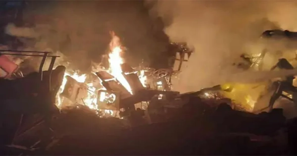 A fire broke out late Tuesday night at the Pahartali Railway Workshop in Chattogram, sparking concerns over the cause of the blaze. The incident occurred around 10:30 PM in the "CHR shop" area of the facility, where old scrap materials were piled up.