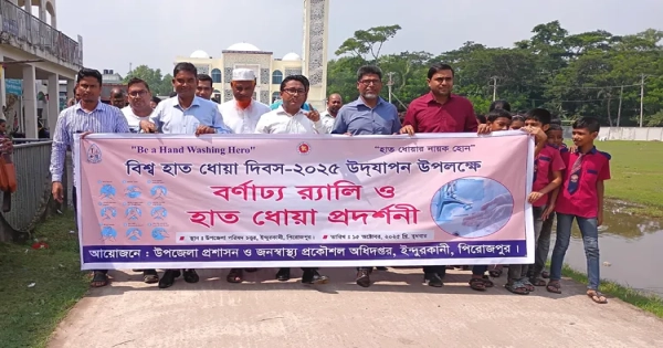 Global Handwashing Day was celebrated in Indurkani, Pirojpur, with the theme "Be the Handwashing Hero." The Upazila Administration and the Department of Public Health Engineering jointly organized a vibrant rally and a handwashing demonstration on Tuesday, October 15, to mark the occasion.