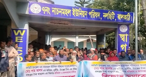 UP members and locals of the Nachanmahal Union Parishad (One) of Nalchiti Upazila of Jhalakathi have protested demanding the removal of Shah Alam, the panel chairman (one) of the Nachanmahal Union Parishad, on irregularities and corruption charges.