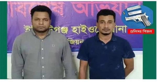 A team of Highway Police conducted the operation at around 8:45 pm on Monday (January 19) in the Madhaiya Bus Station area of Chandina Upazila, Comilla on the Dhaka-Chittagong Highway. Police said that the two were arrested after searching a suspicious passenger bus. During the search, a foreign pistol, two magazines and one round of bullets were recovered from them. The arrested are Habibur Rahman Shakil (33) alias Yoad Shakil, son of Babul Mia of Monairkandi village of Sonargaon upazila of Narayanganj district, and Mohammad Chishti (42) son of Golzar Hossain of Laxmankhola area of Bandar upazila.