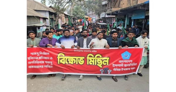 A protest march was held by the initiative of the Santhia Upazila branch of Chhtra Shibir in protest against the postponement of the Shahjalal Science and Technology University Central Students' Union elections and demanding the immediate implementation of Shaksu. The procession started in front of Santhia Girls' High School after Asr on Thursday and ended with a short rally by walking along the main roads of the upazila.