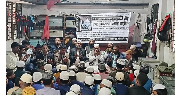 A Quran recitation and prayer mahfil was held at Jamia Siddique Qawmi Hafezia Madrasa on Saturday afternoon at the initiative of the Sariakandi Upazila Kazla Union branch of the Bangladesh Nationalist Cyber Party to pray for the forgiveness of former Prime Minister Begum Khaleda Zia.