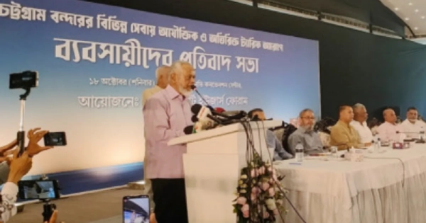 A protest meeting has been organized by the Chittagong Port Users Forum to protest the increase in tariff fees at the Chittagong Port. In the meeting, business leaders have threatened to close the Chittagong Port if the tariff is not canceled within seven days.