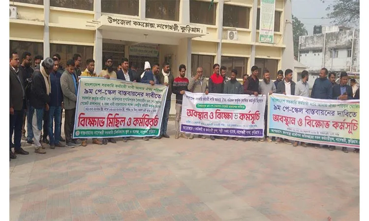 A protest procession and sit-in program have been held in Nageshwari, Kurigram, to implement the 7-point demands including the gazette publication of the 9th pay scale. They held the protest and sit-in program in the upazila premises from 9 am to 11 am with the participation of government officials and employees of various departments of the upazila.