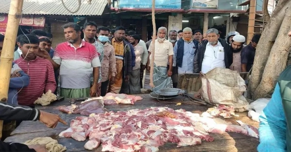 Acting on the instructions of Upazila Nirbahi Officer (UNO) Rakibul Islam, the court imposed the fine and seized 60 kg of tainted meat, which was subsequently buried to ensure it did not reach consumers. Animal Resources Extension Officer Dr. Golap Hossain and local residents were present during the disposal.