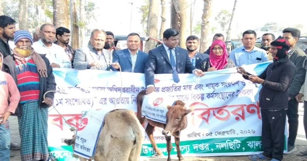 In order to create alternative employment for fishermen in Nalchiti, Jhalakathi, 60 healthy and strong Bakna calves have been distributed among 60 poor fishermen.