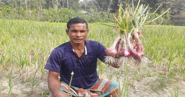 A local farmer in Kaliganj, Lalmonirhat, has achieved a breakthrough in off-season agriculture by successfully cultivating the Indian "Nashik Red N-53" onion variety during the summer.