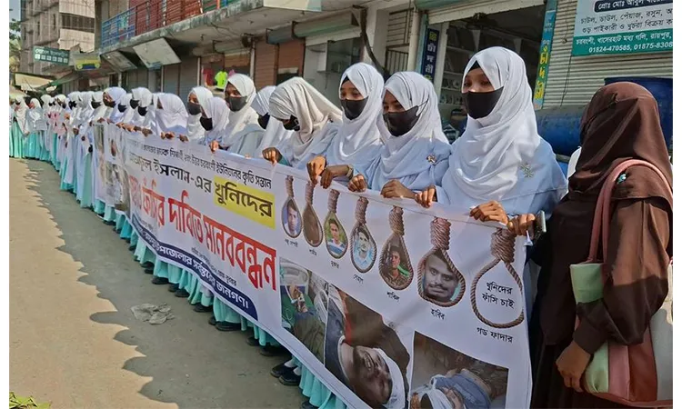 A protest and human chain have been formed in Raipur, Lakshmipur, demanding the arrest of those involved in the brutal beating to death of college student Ashraful Islam with a hammer after drug dealers were handed over to the police. The event was organized at Khaserhat in Uttar Charbangshi Union of the upazila around 11 am on Wednesday (February 18). Even though a month has passed since the murder, 7 accused in the case are still at large.
