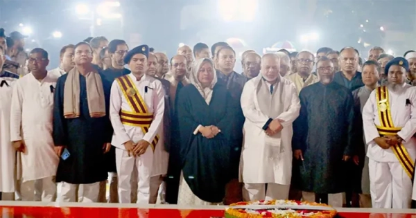 Marking International Mother Language Day, the Chief Justice arrived at the Dhaka University premises at 6:00 AM to place a floral wreath at the monument's altar. He was accompanied by senior judges from both the Appellate and High Court Divisions of the Supreme Court.