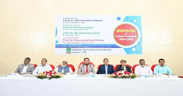 Gazipur Agricultural University (GAU) held an orientation program on Sunday for its newly admitted 'Winter 2025' term graduate students. The batch includes 249 MS and 5 PhD students, including researchers from Nigeria and graduates from top national universities.