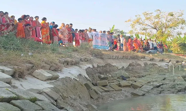 Residents such as Swapna Saha, Parul Bala, and Champa Saha say they are living in constant fear as the river continues to move closer to their homes. Like hundreds of other families along the riverbank, they are uncertain where they will go if the erosion worsens.