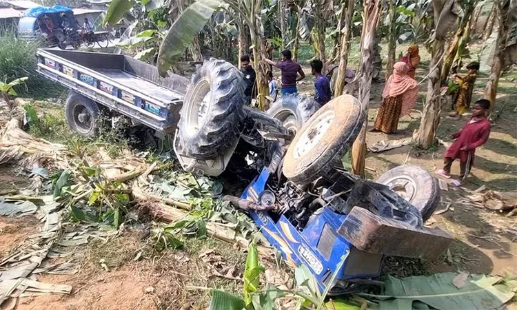 The accident occurred around 9:00 am at the Muktarpur three-road intersection on the Madilahat-Phulbari road. Police and witnesses said Russell was driving a sand-laden trolley toward Desma. While attempting to pass a van at the intersection, he lost control and the vehicle plunged into a roadside ditch, crushing him underneath. He died on the spot.