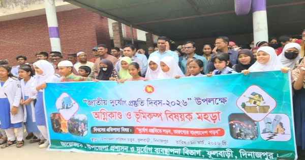 Phulbari Upazila in Dinajpur District celebrated National Disaster Preparedness Day on Monday, March 10, with a fire and earthquake drill, a rally, and a discussion meeting.