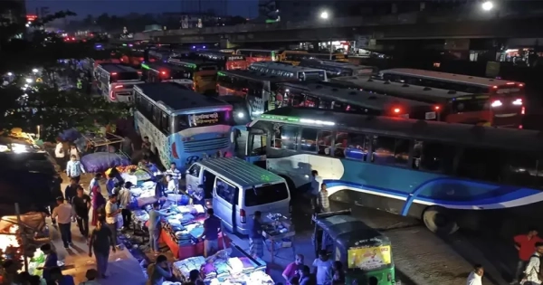 On Monday night (March 16), Chandra Bus Terminal saw heavy crowds as passengers prepared for long-distance travel. The Dhaka-Tangail road, including the Chandra, Steep Pair, and Kaliakoir bypass areas, experienced increasing traffic after dark. Long queues of vehicles were reported at key checkpoints.