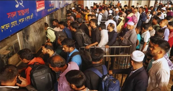While offices were open until Monday, the "main wave" of the exodus started Tuesday morning. Similar crowds were also reported at bus counters adjacent to Kamalapur. With a seven-day holiday period ahead, authorities expect this high volume of passengers to continue until the day before Eid.