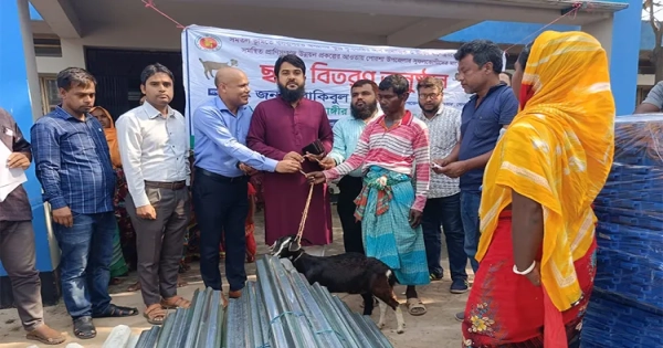 Upazila Executive Officer (UNO) Rakibul Islam attended the event as the chief guest, overseeing the distribution of 540 goats (two per family), along with corrugated iron sheets, pillars, and mats for animal sheltering.