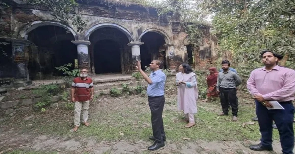 During the visit, officials assessed the architectural condition and historical significance of the structures. Dr. Niharanjan Gupta, a celebrated writer across the subcontinent, was born in Itna on June 6, 1911. His father, Satya Ranjan Gupta, constructed the family home in 1826. Nearby stands the contemporary residence of Gauri Sen, the wife of wealthy merchant Hemant Sen.