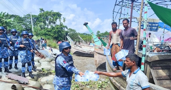 To protect fisheries resources in Bhola, strict surveillance and constant operations by the Coast Guard are continuing. On this occasion, the Coast Guard South Zone has taken all measures to successfully implement the mother hilsa conservation program. To enforce the restrictions, intelligence surveillance is being increased in the coastal and riverine areas and patrols are being conducted 24 hours a day. In addition, miking, leaflet distribution and everyone is being urged to obey the law to increase awareness among fishermen. Meanwhile, on the fifth day of the ban, Coast Guard South Zone members are conducting strict operations in the Meghna and Tetulia rivers of Bhola from Wednesday morning. Coast Guard South Zone Staff Officer Operation Lt. Md. Muttakin Siddiqui said that they have been conducting regular operations and patrolling activities during the main breeding season of Hilsa. They have been distributing awareness leaflets and marking among fishermen in various fishing villages including Bhola Canal in Shibpur Union of Bhola Sadar since Wednesday morning. It is worth noting that since it is the main breeding season of Hilsa, there is a ban on fishing all types of fish including Hilsa in the Bhola River from October 4 to October 25.