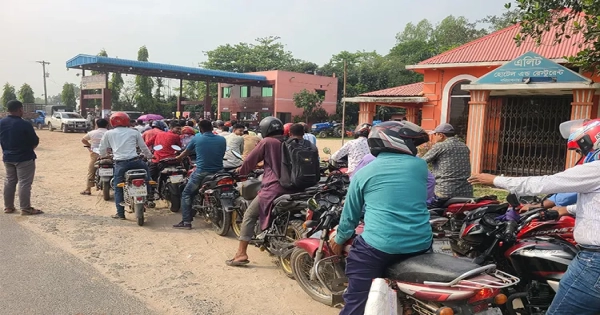 A fuel oil crisis is gripping Phulbari and neighboring upazilas in Dinajpur, fueled by rumors and panic buying. Unscrupulous individuals are reportedly exploiting the situation by repeatedly queuing for oil to resell at inflated prices on the open market.