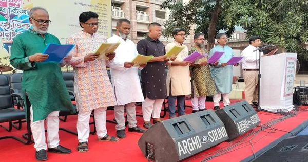 The event brought a festive atmosphere to the Bhola District Council premises, gathering prominent local figures, journalists and cultural activists.