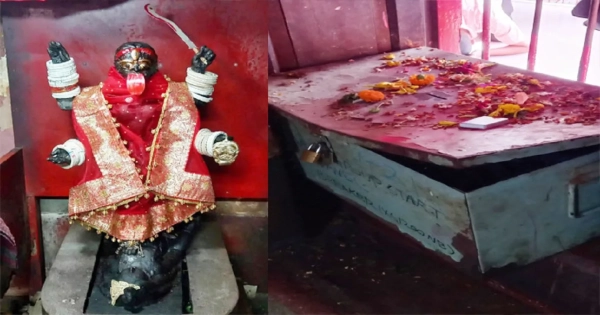 It has been reported that the thieves accessed the temple by climbing onto its tin roof and breaking the glass ventilator to gain entry. They took a gold and silver crown weighing four bhari, earrings, a chain with a locket weighing two bhari, a silver necklace weighing four bhari, a gold locket weighing four annas, and the donation box, which contained cash.