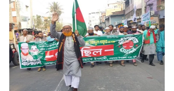 Thousands of men and women flocked to the election rally of Abdul Gafur, the parliamentary candidate for Bangladesh Jamaat-e-Islami Kushtia-2 (Bheramara-Mirpur) constituency. The rally was held in Bheramara town on Monday (February 9) afternoon.