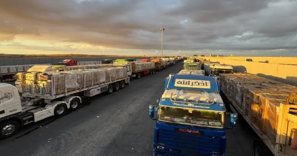 ![Trucks loaded with humanitarian aid are parked on the Egyptian side of the Rafah crossing, waiting to get access to the Gaza Strip, on Sunday [AFP]](/assets/news_photos/2025/10/15/image_232_1760507830.webp)