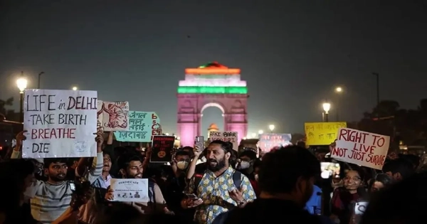 Dozens of protesters, including parents and environmental activists, rallied at India Gate in New Delhi on Sunday, demanding urgent and effective government action to curb the national capital’s persistent and dangerous air pollution crisis.