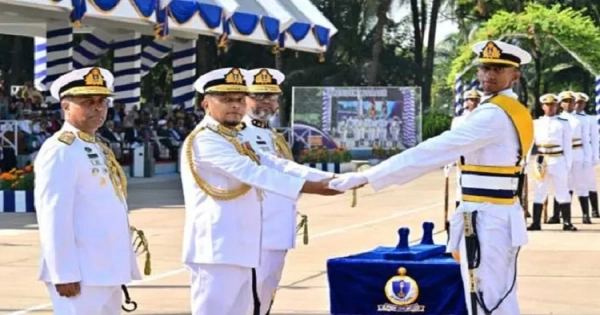 The Navy Chief presented medals to the trainees who excelled in various subjects. Midshipman Syed Tahsin Ahmed received the 'Sword of Honor' as the best midshipman in all subjects. Midshipman SM Abrar Obaid received the 'Navy Chief Gold Medal' as the second highest achiever in the training. Later, the newly commissioned officers formally took the oath of allegiance to protect the country's independence and sovereignty.
