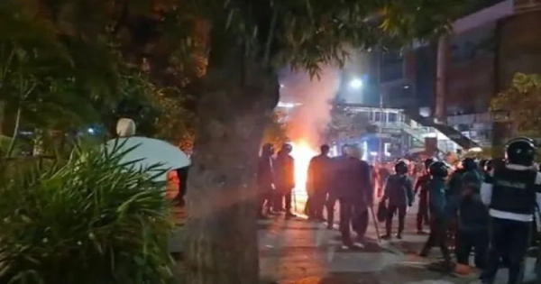 Assistant Commissioner of Police (Dhanmondi Zone) Shah Mostafa Tariquzzaman noted that the protesters also set fire to scraps on the road immediately in front of the building.