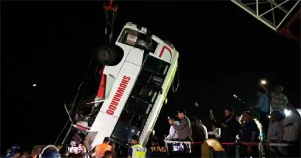 According to reports, the bus, travelling on the Kumarkhali–Rajbari route, lost control around 5:15pm while boarding the ferry and fell into the river. So far, 26 bodies have been recovered.