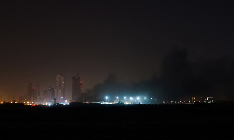 Smoke rises from a U.S Navy Base following an Iranian strike, in Juffair, Bahrain.