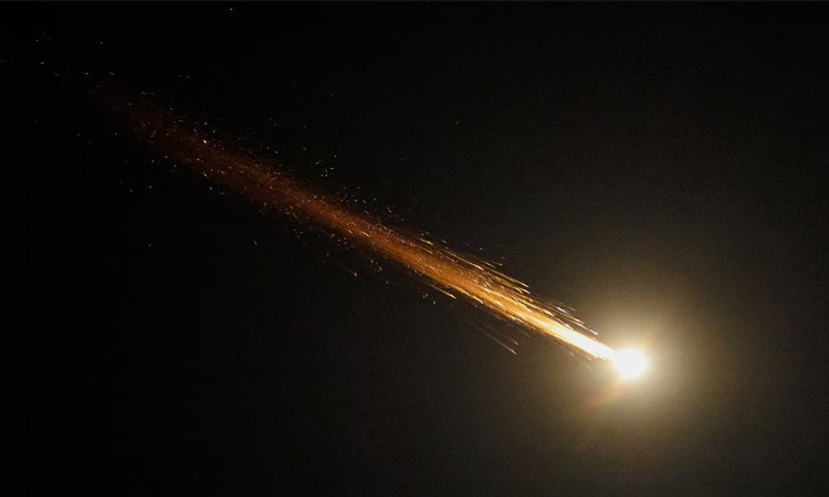 A fragment of a projectile as Israeli anti-air defense systems operate against missiles from Iran, as seen from Ashkelon, Israel.
