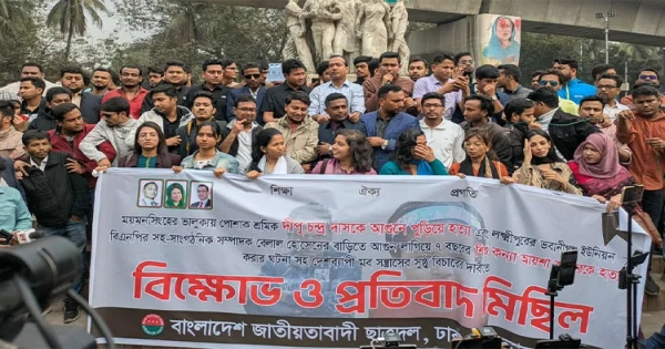 The Dhaka University (DU) unit of Jatiyatabadi Chhatra Dal staged a major protest rally on campus today, demanding immediate justice for recent incidents of mob violence and arson across Bangladesh.