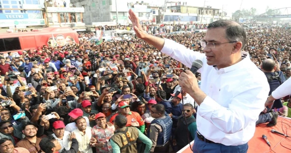 On January 30, BNP Chairman Tarique Rahman addressed a massive roadside rally at the Mokamtola bus stand in Shibganj, Bogura.