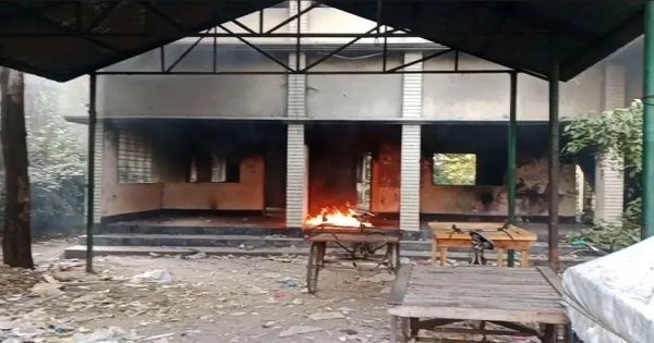 On 21 February, the abandoned Awami League office was set on fire by unidentified individuals. Protesting the incident, leaders of the Swechchhasebak League and district Chhatra League placed wreaths at the portrait of Sheikh Mujibur Rahman.