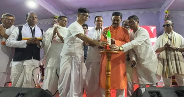 The festival was formally inaugurated by Advocate Indrajit Saha, trustee of the Hindu Religious Welfare Trust for Sirajganj, Pabna and Bogra regions. In the evening, a religious discussion meeting was held where retired army physician Captain Dr Sarwar Jahan Faiz attended as guest of honour.